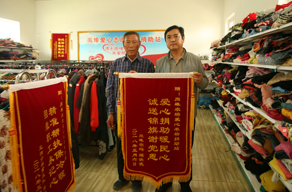 近日,筆者走進“崗埠愛心志愿衣物捐助站”看到。屋里一排排衣架上整整齊齊掛滿了各類衣服,男的女的、大人小孩四季衣服都有,墻上掛著來自贛榆、東海、灌云和農場的贈送的多面錦旗。“雖然我家有很多困難,但黨委李書記時常會去關心,為我家送錢送物,排憂解難,解決了不少難事!今天我選了6件衣服,自己的、老伴的,還有孫子孫女的”正在挑選衣服的錢大西高興地說。