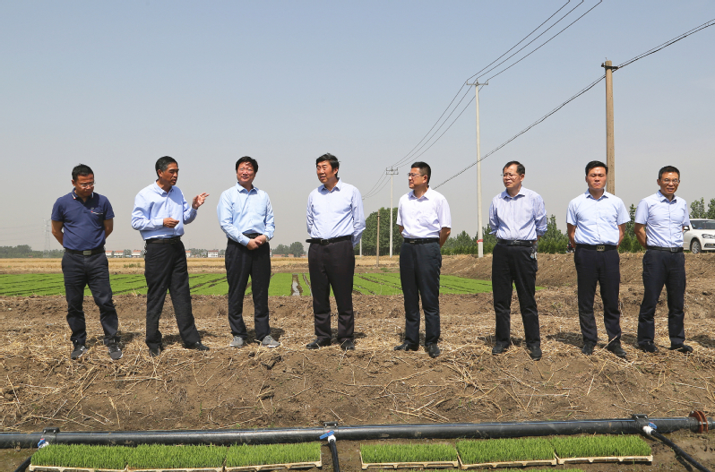 6月的崗埠,金燦燦的小麥遍布田野,到處是一派豐收景象。胡兆輝一行先后實(shí)地查看了倉(cāng)儲(chǔ)中心、污水管網(wǎng)項(xiàng)目、富民科技園等現(xiàn)場(chǎng)及在田秧苗、小麥的長(zhǎng)勢(shì)情況,邊看邊聽取相關(guān)情況的匯報(bào),每到一處都向奮戰(zhàn)在生產(chǎn)一線的干部職工致以親切的問(wèn)候。