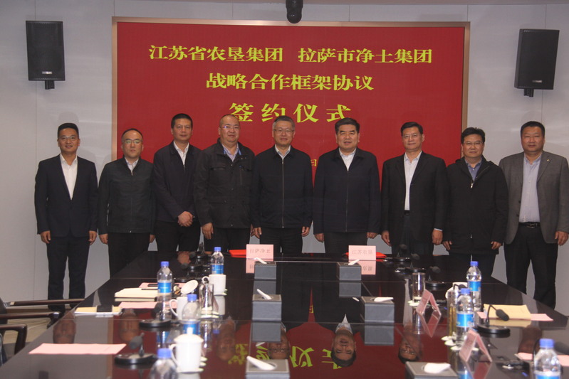 會見結束后,魏紅軍與沈海斌一行共同出席江蘇農墾與拉薩凈土戰略合作框架協議簽約儀式。集團公司董事會秘書、辦公室主任孟亞平與拉薩市凈土集團黨委書記、董事長張進才代表雙方簽署協議。