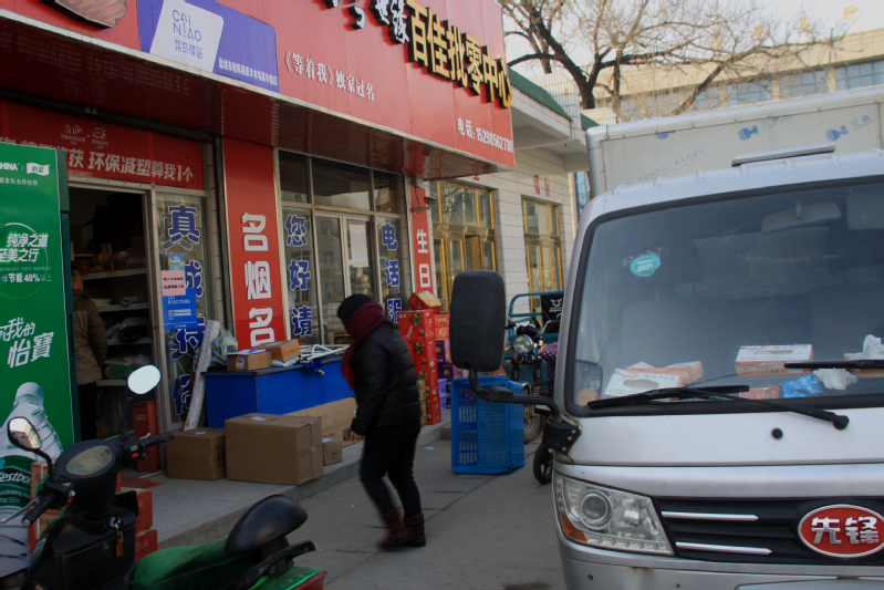 分布在新洋城鎮的三個菜鳥驛站每天人來人往領取快遞包裹,服務員忙得不亦樂乎。