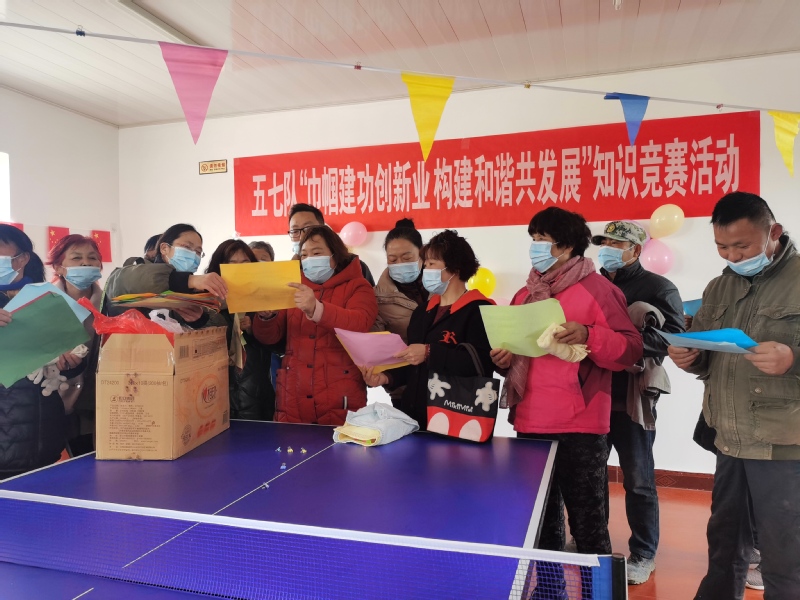 “活動開始!”隨著五七隊(duì)婦女主任一聲令下,活動室的大門被打開,喜慶的彩帶、鮮艷的國旗撲入眼簾,而此刻最吸引大家的還是間夾其中的知識競賽題。職工居民紛紛走到賽題前,讀題、思考,互相學(xué)習(xí)交流,競賽現(xiàn)場其樂融融。據(jù)了解,此次知識競賽精心設(shè)計(jì)了政治法律、黨史知識、農(nóng)業(yè)生產(chǎn)、婦女健康、道德規(guī)范、企業(yè)文化等60條賽題,讓婦女們在歡快的節(jié)日氛圍中學(xué)習(xí)知識,提升本領(lǐng)。