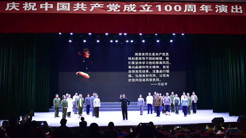 周恩來(lái),這是一個(gè)光榮的名字、不朽的名字。周恩來(lái)同志是近代以來(lái)中華民族的一顆璀璨巨星,是中國(guó)共產(chǎn)黨人的一面不朽旗幟。作為淮安市委慶祝中國(guó)共產(chǎn)黨成立100周年獻(xiàn)禮作品之一,該劇以習(xí)近平總書記提出的不忘初心、堅(jiān)守信仰,對(duì)黨忠誠(chéng)、維護(hù)大局,熱愛(ài)人民、勤政為民,自我革命、永遠(yuǎn)奮斗,勇于擔(dān)當(dāng)、鞠躬盡瘁,嚴(yán)于律己、清正廉潔這六個(gè)杰出楷模為主線,擷取了黃河搶險(xiǎn)、送侄回鄉(xiāng)、故鄉(xiāng)行、一件珍貴的襯衫、顧全大局、西花廳不滅的燈光、最后的歲月等七個(gè)篇章,以藝術(shù)的手法還原或再現(xiàn)了周恩來(lái)作為中國(guó)共產(chǎn)黨人杰出楷模,在為中國(guó)人民謀幸福、為中華民族謀復(fù)興、為人類進(jìn)步事業(yè)而奮斗的光輝一生中的一些典型情景,再現(xiàn)和展示了周恩來(lái)這一偉岸的精神豐碑,塑造和彰顯了一名優(yōu)秀中國(guó)共產(chǎn)黨人的光輝形象,使大家深受感染并深愛(ài)感動(dòng)。紛紛表示要深入學(xué)習(xí)周恩來(lái)對(duì)理想信念堅(jiān)定執(zhí)著、對(duì)黨的事業(yè)忠貞不渝、對(duì)革命工作高度負(fù)責(zé)、對(duì)人民群眾情懷至深、對(duì)自我修養(yǎng)嚴(yán)格要求的精神風(fēng)范,始終做到不忘初心、堅(jiān)守信仰,牢記手中的權(quán)力是黨和人民賦予的,是用來(lái)為人民服務(wù)的,一身正氣、兩袖清風(fēng),敬畏人民、敬畏組織、敬畏法紀(jì),更好地加強(qiáng)自身建設(shè),做一個(gè)堂堂正正的共產(chǎn)黨人,用實(shí)際行動(dòng)在新時(shí)代新征程上作出各自應(yīng)有的貢獻(xiàn)。