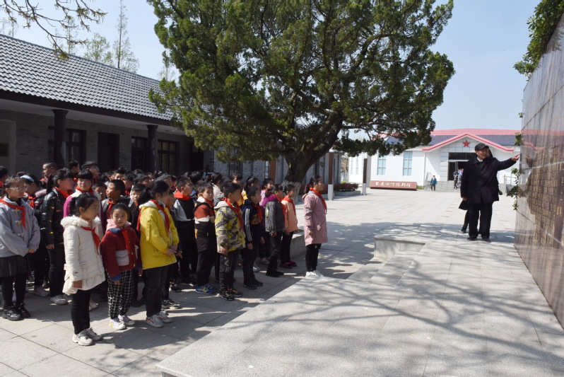 “我們給學生們就是要多講講過去黨的歷史,多說說農場的建場史,讓他們在實境教育和感悟中,提升思想境界,從而接過淮海人的接力棒,一棒一棒向下傳,確保農場的事業后繼有人。”胡福生表示。圖為胡福生老人在給學生們講傳統時的鏡頭。