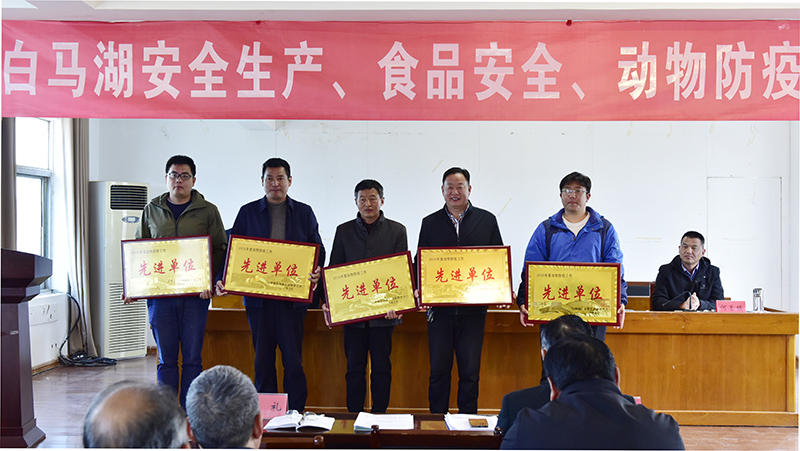 會(huì)上,何善棟作安全系列工作報(bào)告,總結(jié)或通報(bào)2020年安全生產(chǎn)、食品安全和動(dòng)物防疫工作情況,布置或解讀2021年安全生產(chǎn)、食品安全和動(dòng)物防疫工作任務(wù)或要點(diǎn)。四個(gè)單位負(fù)責(zé)同志代表各單位向韓樹明遞交安全系列工作責(zé)任狀,進(jìn)一步強(qiáng)化了安全生產(chǎn)目標(biāo)管理、食品安全、特種設(shè)備安全、消防安全、動(dòng)物防疫等工作的責(zé)任。接著,韓躍武宣讀了對2020年度食品安全工作、動(dòng)物防疫工作先進(jìn)單位及安全生產(chǎn)、食品安全先進(jìn)個(gè)人進(jìn)行表彰的相關(guān)決定并由在主席臺就座的各位領(lǐng)導(dǎo)為他們一一頒獎(jiǎng)。