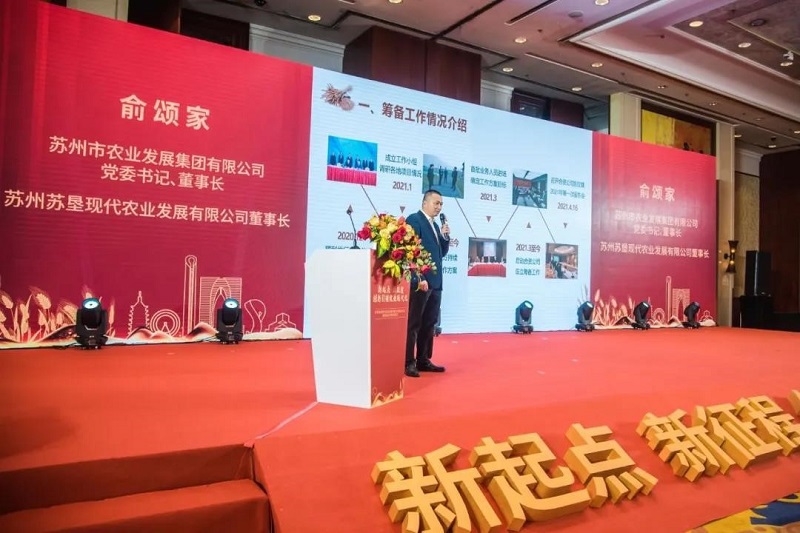 蘇州農發集團董事長、蘇州蘇墾董事長俞頌家作新公司籌建情況的匯報,從公司籌備工作情況、公司概況和服務內容、發展目標和未來展望等方面詳細介紹了新公司的情況。