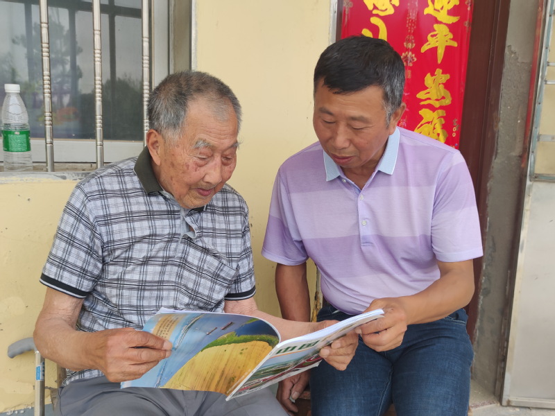 6月8日下午,當《中國農墾》第6期雜志送到農場宣傳部門后,其中在文苑百花欄目上,刊登了農場張躍兵寫的一篇《一名老兵的農墾情懷》的人物通訊。為了讓已經94歲高齡的農場離休老干部張國裕在第一時間看到自己的經歷故事,宣傳部門的同志立即將這本剛到的雜志,騎著摩托車交到了作者張躍兵和他的父親張國裕的手中。張國裕撫摸著這本雜志,指著張躍兵的名字開心地說:“張躍兵。”其欣喜的表情躍然紙上。