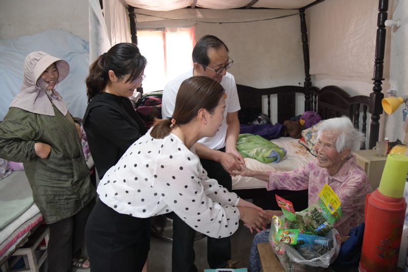 在端午節來臨之際,為讓百歲老人過上一個快樂詳和的傳統佳節,6月11日下午,淮海農場有限公司工會與社區民政負責人一起,帶著粽子、大米、葵花籽油等生活用品,分別慰問了今年已有102歲的張瑞瑞和邱維珍老人,并向她們致以節日的問候。