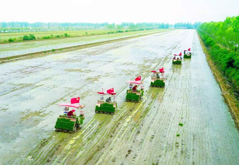 100多臺插秧機(jī)奔忙在田間,功夫不負(fù)有心人,新洋分公司終于按質(zhì)按時完成了插秧任務(wù),向建黨100周年獻(xiàn)上了一份厚禮。