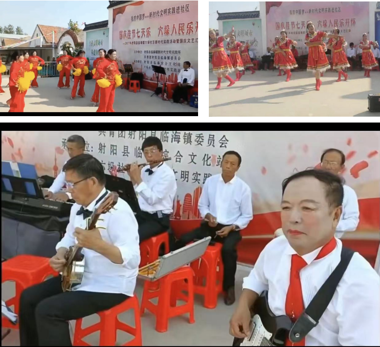 國慶佳節(jié),舉國歡騰。為進(jìn)一步弘揚中華民族傳統(tǒng)文化,豐富農(nóng)場社區(qū)居民的精神文化生活,營造出熱烈喜慶、文明祥和的節(jié)日氛圍,10月4日,淮海農(nóng)場職工居民組織的文化表演節(jié)目還以場鄉(xiāng)共建的形式,走進(jìn)了鄰近的臨海鎮(zhèn)六垛社區(qū)居委會文明實踐站,開展歡歡喜喜迎國慶佳節(jié)七天樂活動,與當(dāng)?shù)剌爡^(qū)居民歡聚一堂,一起憧憬祖國輝煌明天。