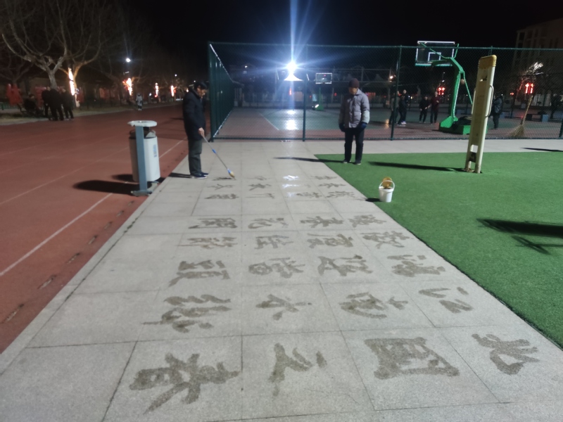 說(shuō)起寫(xiě)“地書(shū)”的好處,田海燕說(shuō),他每天晚上都要在廣場(chǎng)上、公園里或是路道邊練習(xí)一個(gè)多小時(shí),這樣既有利于保健養(yǎng)生,也有利于益智養(yǎng)性,在回憶名人詩(shī)詞和偉人風(fēng)采中,展現(xiàn)博大精深的中華文化,也得到了眾多觀看者的稱(chēng)頌,這可謂是一舉多得。