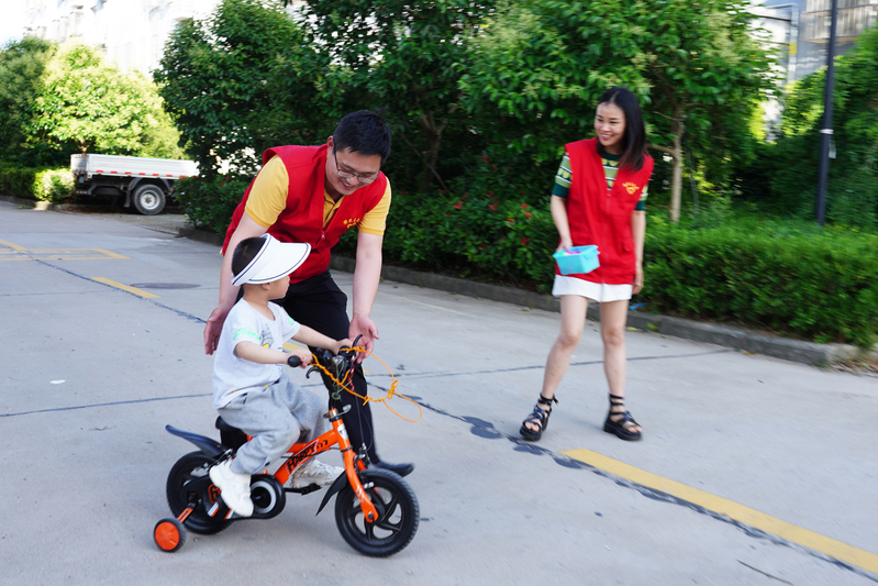 6月10日下午,弶港農(nóng)場團委“愛心爸爸”“愛心媽媽”帶著兒童繪本和玩具,走進困境兒童小浩浩的家里?!皧W迪曼與怪獸作戰(zhàn)斗…… ”夢想小屋的書桌前,浩浩依偎在“愛心媽媽”孫菁懷里,聽著有聲有色的奧特曼的故事。“別怕,勇敢地往前騎,我在身后保護你”“我們一起來比賽,看誰快”小區(qū)的空地上,在“愛心爸爸”陳海榮鼓勵下,浩浩騎著兒童單車,開朗的笑聲在小區(qū)里飄蕩。一起玩拼圖、畫畫、做游戲,幾個小時下來,不愛說話的小浩浩從最初的羞澀生疏,到漸漸展露笑容,短暫的相聚中,與“愛心爸媽”建立了深厚的信任和感情。