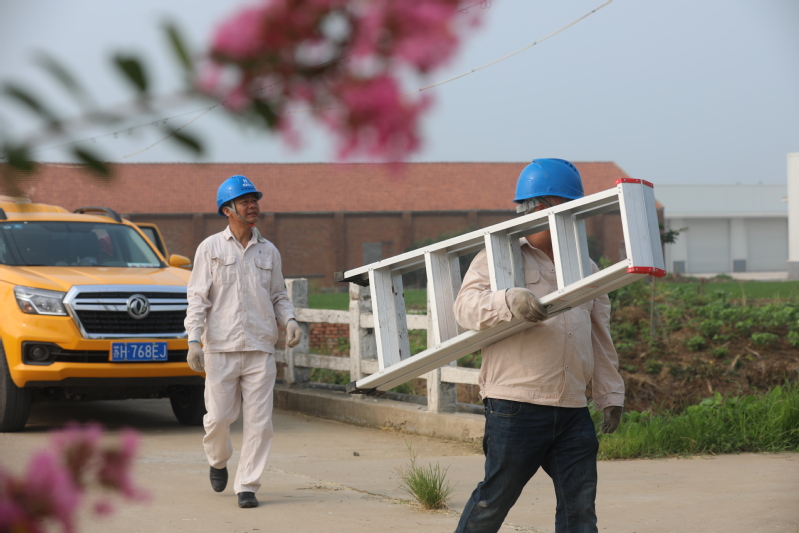 7月27日早上6點半,寶應(yīng)湖農(nóng)場各居民臺變處,一位位頭戴安全帽的電力小哥已經(jīng)到崗就位。