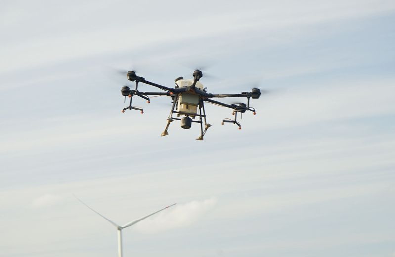 2大隊河北的水稻田上空,一架無人機在噴灑農藥,只見噴灑農藥噴噴停停,一點都不連貫,我好生納悶,是不是無人機出故障了。向操縱無人機的師傅一詢問,我恍然大悟,我這是少見多怪啊,不是無人機出故障,而是植保無人機輸入了事先由測繪巡田無人機采用多光譜技術拍攝下的雜草分布圖,植保無人機根據雜草分布圖精準點灑農藥,所以就出現了噴灑農藥噴噴停停的情況。師傅還告訴我,因為精準施藥,這塊20多畝的稻田,只用了8畝的藥量,節約農藥五分之三,大大降低了施藥成本。