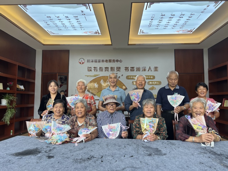 為慶祝中秋節的到來,踐行新時代文明實踐理念,9月9日下午,新洋居家養老服務中心開展“花好月圓 濃情新洋”手工花DIY活動,轄區老年人歡聚一堂,巧手共敘鄰里情,慶祝中秋佳節的同時,表達對建場70周年的美好祝福。