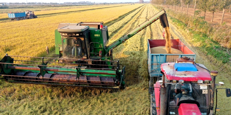 據了解,黃海水稻收割機械近200臺在田作業,收割機械化率達100%。黃海大面積水稻收獲峰期將在本月末前后,預計經一周努力,水稻即可收獲告罄。