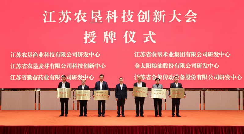 會(huì)上,吳本輝、姜建友共同為江蘇農(nóng)墾漁業(yè)科技有限公司和江蘇省農(nóng)墾產(chǎn)業(yè)技術(shù)研究院有限責(zé)任公司揭牌,吳本輝為蘇墾漁業(yè)研發(fā)中心、蘇墾米業(yè)研發(fā)中心、蘇墾麥芽科技創(chuàng)新中心、金太陽(yáng)糧油研發(fā)中心、勤奮藥業(yè)研發(fā)中心、金象傳動(dòng)研發(fā)中心授牌,姜建友發(fā)布江蘇農(nóng)墾2024-2025年揭榜掛帥項(xiàng)目榜單,生物育種鐘山實(shí)驗(yàn)室、省農(nóng)科院、南京農(nóng)業(yè)大學(xué)、江南大學(xué)、揚(yáng)州大學(xué)分別與集團(tuán)公司所屬企業(yè)簽署重點(diǎn)項(xiàng)目合作協(xié)議。