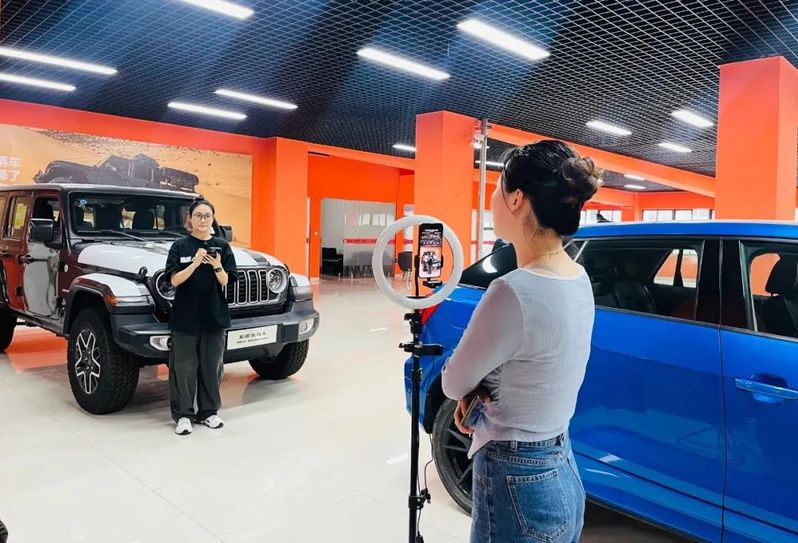 “牧馬人原廠配備全地形255 75/R18輪胎、中控觸摸屏由8寸升級到12寸、涉水深度達760mm?!碧K舜錦尚公司(Jeep4S店)主播陳佳琪正通過直播間為客戶360°全方位展示和講解車輛配置,她耐心地解答客戶問題,1名客戶已成功預約進店。