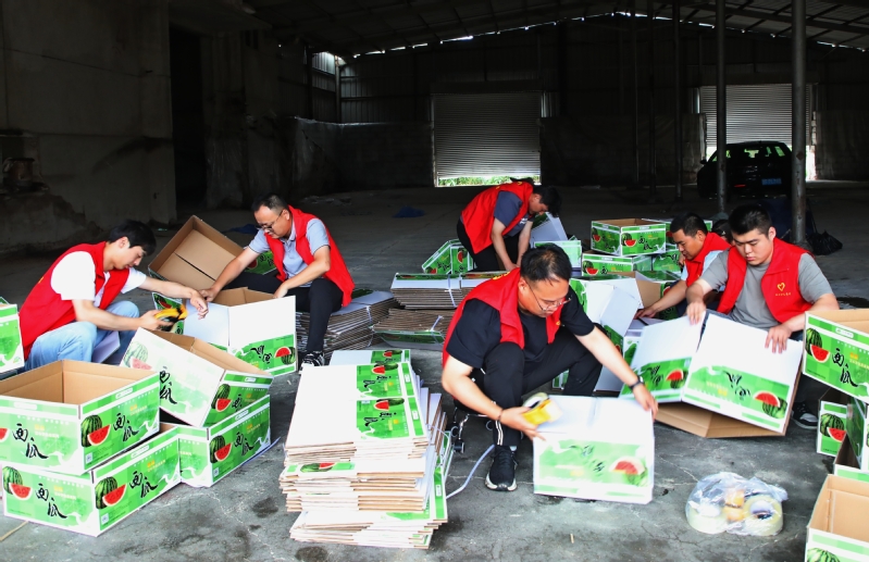 日前,南通江心沙農(nóng)場接到一筆1300余箱西瓜訂單,急需人手幫助進行包裝、搬運等作業(yè)。江心沙農(nóng)場團委第一時間動員全場團員青年組建機動突擊隊到田間地頭和倉庫幫忙,全力以赴趕訂單,讓“志愿紅”成為產(chǎn)業(yè)“虹”的亮麗底色。 袁偉 許叢軍 攝