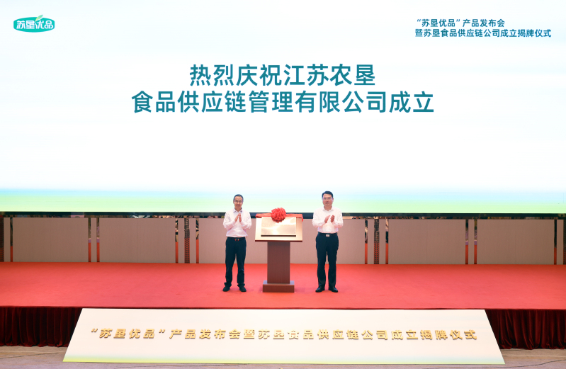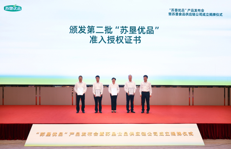 活動現(xiàn)場,吳本輝與中山大廈負(fù)責(zé)人共同為蘇墾食品供應(yīng)鏈公司成立揭牌。朱浩為第二批“蘇墾優(yōu)品”生產(chǎn)單位頒發(fā)授權(quán)證書。王立新在致辭中系統(tǒng)闡述了“蘇墾優(yōu)品”產(chǎn)品的價值定位、市場定位和質(zhì)量保障體系,并介紹了蘇墾食品供應(yīng)鏈公司的組建背景與發(fā)展愿景。
