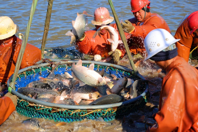 12月25日,江蘇省連云港市海州區的江蘇農墾崗埠農場,水產工人分工協作,加緊拉網捕撈鯉魚、花鰱、白鰱等各種鮮魚,準備供應云南昆明、山東濟寧等多地市場。隨著2026年元旦臨近,水產市場需求量逐漸增大,當地積極做好鮮魚捕撈銷售工作,切實滿足節日市場需求。