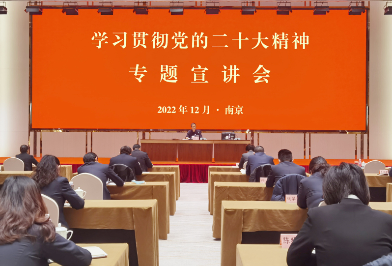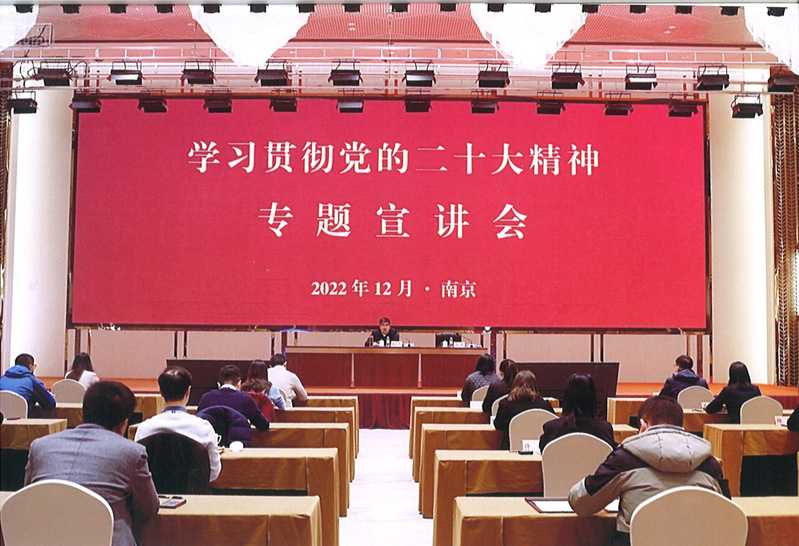 12月7日下午,集團公司黨委副書記姚準明到中山大廈作學習貫徹黨的二十大精神專題宣講。會上,姚準明緊密結合墾區形勢和工作實際,運用通俗的語言和豐富的案例,分別從“深刻認識和把握黨的二十大的重大意義、深刻認識和把握過去5年的工作和新時代10年的偉大變革、深刻認識和把握‘兩個確立’的決定性意義、深刻認識和把握譜寫馬克思主義中國化時代化新篇章的歷史責任、深刻認識和把握以中國式現代化推進中華民族偉大復興的使命任務、深刻認識和把握全面建設社會主義現代化國家的目標任務、深刻認識和把握以偉大自我革命引領偉大社會革命的重要要求”等七個方面,對黨的二十大提出的一系列新思想新論斷、作出的一系列新部署新要求進行了全面系統深入的宣講闡釋。姚準明指出,聽黨話、感黨恩、跟黨走,是江蘇農墾的光榮傳統,也是江蘇農墾人堅決擁護“兩個確立”、堅決做到“兩個維護”的生動實踐。新時代江蘇農墾事業一系列重大成就的取得,處處彰顯著習近平新時代中國特色社會主義思想的真理力量和實踐偉力,處處浸潤著人民領袖對江蘇發展的科學指引和親切關懷。姚準明強調,學習宣傳貫徹黨的二十大精神,是當前和今后一個時期的首要政治任務。中山大廈要按照習近平總書