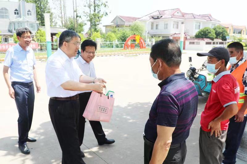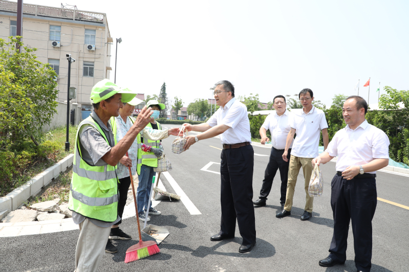 7月13日,集團公司黨委委員、工會主席楊義林到臨海為堅守生產一線的職工送清涼,農場公司黨委領導班子成員以及片區財務總監陪同。楊義林先后來到河濱公園、健康小屋核酸檢測點和農機總站,向奮戰在基層一線的環衛職工、疫情防控工作人員和農機駕駛人員表示慰問并送上了清涼禮包,親切詢問他們的工作情況。楊義林對高溫下堅守的職工表示感謝,囑咐大家在高溫工作時要加強自我保護和安全防范,做好防暑降溫,科學安排作息時間,保障身體健康。同時要求臨海做好夏季安全生產和防暑降溫工作,科學安排一線職工夏季工作時間,既保證高溫期間農業生產,又要維護廣大職工的安全健康權益,確保高溫時節各項工作平穩有序開展。大家紛紛表示,將一如既往、踏踏實實做好本職工作,以實際行動喜迎二十大勝利召開,為建設美麗臨海作出更大貢獻。