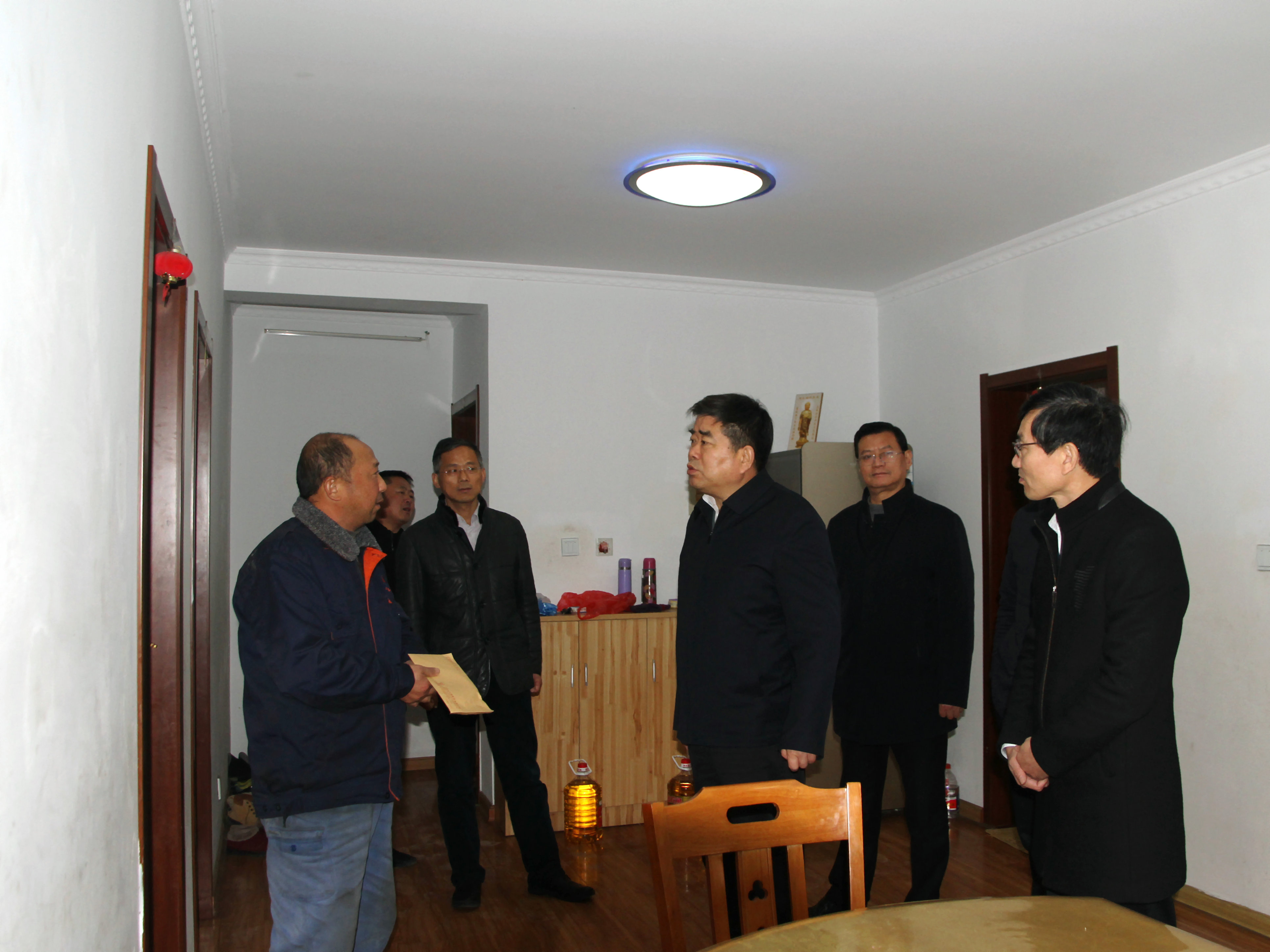1月10日 下午,集團公司黨委書記、董事長魏紅軍到三河走訪慰問部分困難職工,雖然陰霾的天空不時飄著小雨,但受慰問的困難職工家中卻是暖意融融。  在社區居民李軍家,魏紅軍握著李軍的手