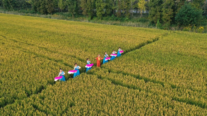 10月22日,江心沙舞蹈協會在金色的稻浪中載歌載舞,以原創舞蹈《在希望的田野上》歡慶豐收,喜迎重陽。